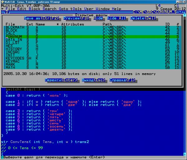 6. Теперь нам нужно перейти к открытому файлу DATA_IN.S, для этого вызываем список открытых файлов, нажав ControlF6. Оригинал (alt 2) - Альбом Предыдущая - Следующая Загрузил SergeCpp, 2011-11-09 20:29:06 |