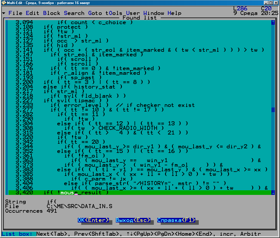 18. Для поиска следующего 'mous' нажимаем Вниз (предыдущего — Вверх).