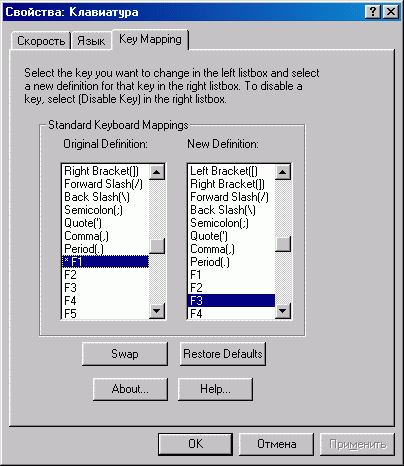 Апплет "Клавиатура" в "Панели управления" после установки ZDKeyMap.inf