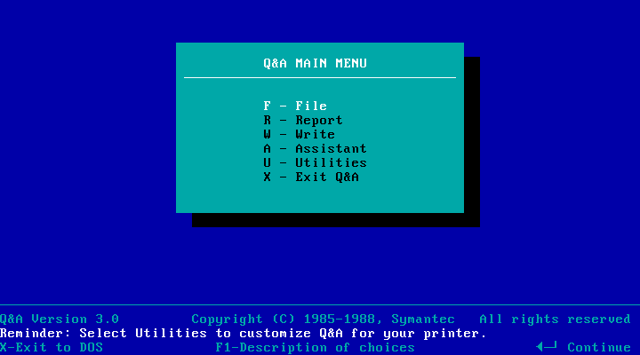 Symantec Q&A (QA) for DOS