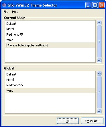 Позволяет применять выбранную тему к приложениям, работающим от GTK