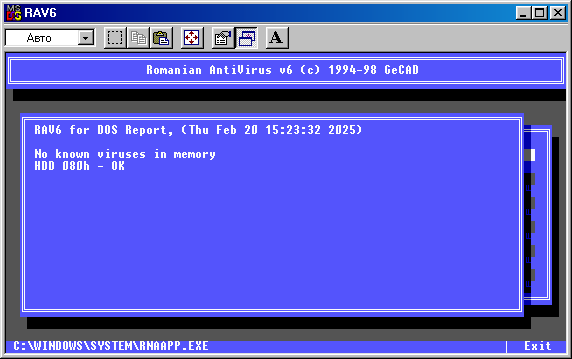 Антивирус RAV6 запущенный в Windows 95.