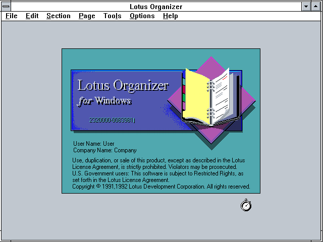Сплэш-окно Lotus Organizer 1.0a