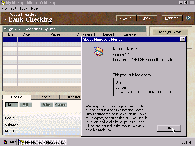 Окно About в Microsoft Money 97