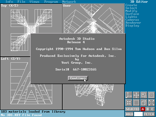 Окно About в 3D Studio 4.0