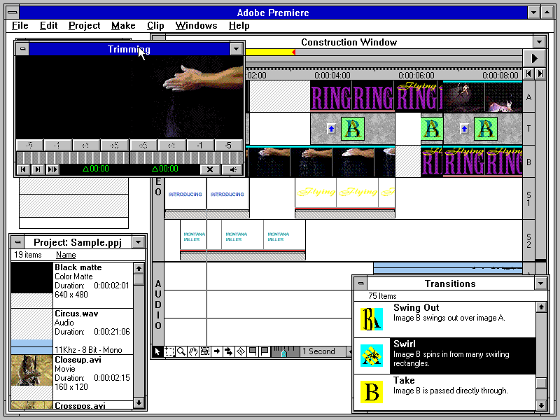 Пример работы в Adobe Premiere 4.0