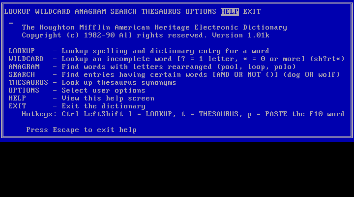 Окно About в American Heritage Electronic Dictionary 1.01k