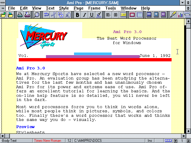 Пример работы в Ami Pro 3.0