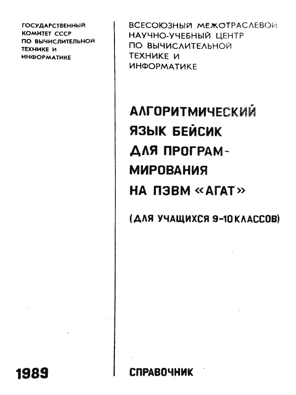 Алгоритмический язык Бейсик для программирования на ПЭВМ «Агат»