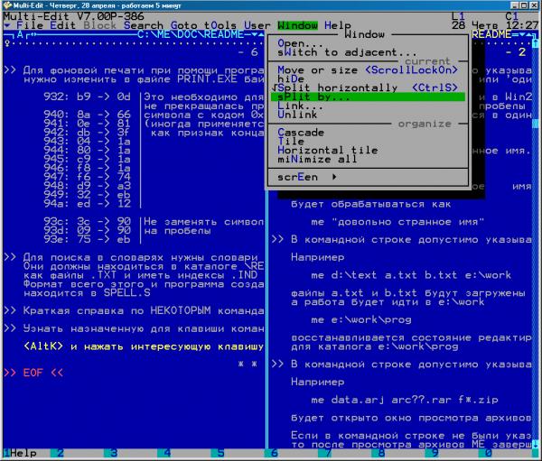 Для этого выбираем пункт 'sPlit by...' в меню Window.