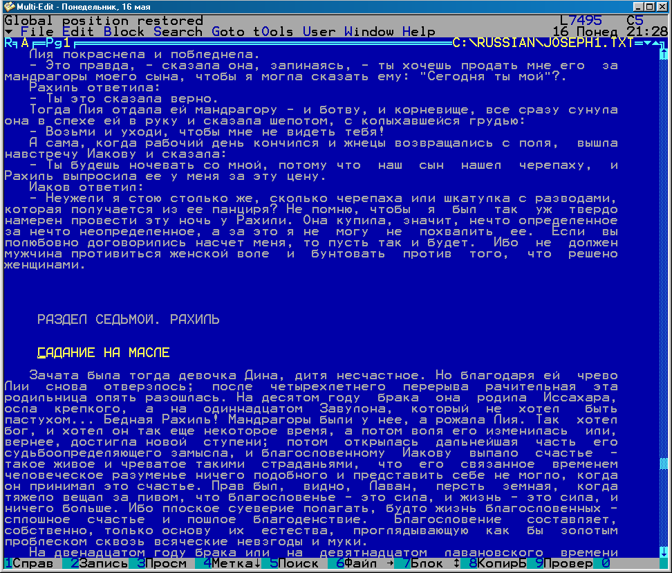 3.3. Для возврата к закрытому файлу и к сохранённой в нём позиции нажимаем ShiftF10. Возврат выполнен, это написано в строке сообщений ('Global position restored' вверху слева). Количество сохранённых позиций уменьшилось. Оригинал (alt 2) - Альбом Предыдущая - Следующая Загрузил SergeCpp, 2011-05-16 22:03:18 |