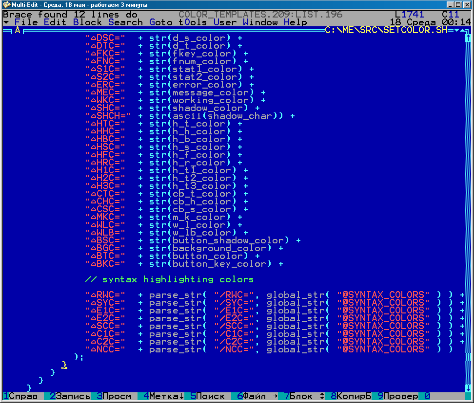 5. Возвращаемся на прежнюю позицию, нажав AltBackspace. Для перехода к концу ближайшей охватывающей пары скобок '{}' нажимаем Alt}. Конечная скобка найдена на 12 строк ниже, это написано в строке сообщений ('Brace found 12 lines downward' вверху слева). Оригинал (alt 2) - Альбом Предыдущая - Следующая Загрузил SergeCpp, 2011-05-18 00:21:42 |