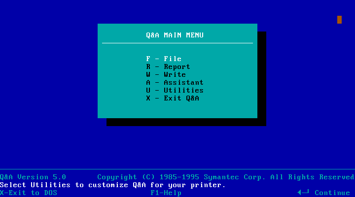 Основное меню англ. DOS-версии 5.0